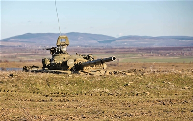 廣袤的平原上,一輛T-72坦克靜靜地停在土坡后面,僅露出一具炮塔,仿佛一頭猛獸正在尋覓獵物。