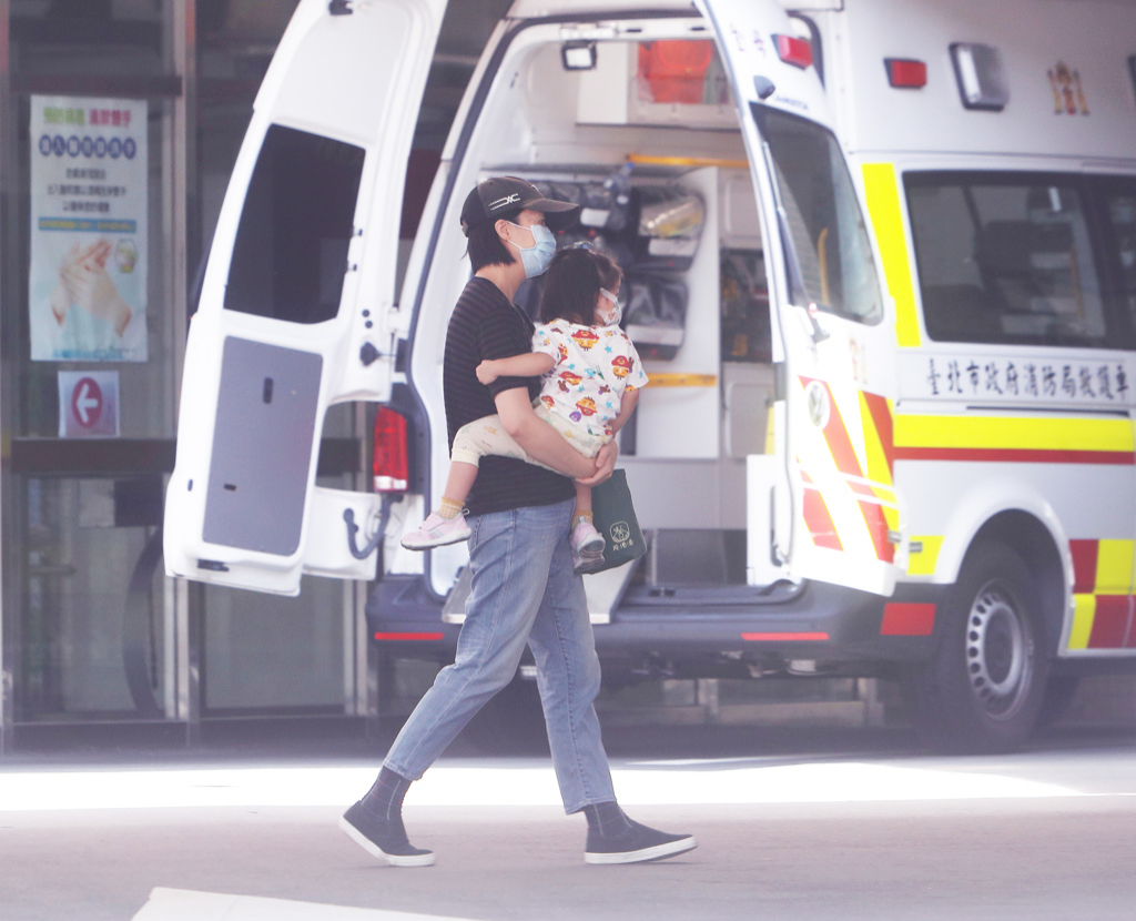 島內(nèi)醫(yī)師認(rèn)為下次單日確診破3萬的時候,可能就是BA.4、BA.5在臺灣社區(qū)掀起大流行。圖為家長帶孩子去醫(yī)院急診門就醫(yī)的畫面。(陳怡誠攝)