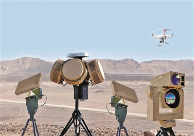 以色列拉斐爾先進(jìn)防御系統(tǒng)公司“無人機(jī)穹”反無人機(jī)系統(tǒng)。