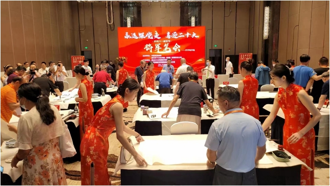 活動(dòng)總策劃鄧新橋先生介紹講到,為了弘揚(yáng)中國(guó)傳統(tǒng)文化 ,謳歌我們偉?的黨和祖國(guó),以實(shí)際行動(dòng)傳承中華文化基因,不忘使命,提升黨員的榮譽(yù)感、責(zé)任感,這次活動(dòng)的舉辦意義重大。書(shū)畫(huà)藝術(shù)作為中華文明的核心,中華民族的靈魂己存在了幾千年,一個(gè)個(gè)中國(guó)字幾千年來(lái)造就了一個(gè)民族,目前正處于歷史變革的重要時(shí)期,中國(guó)書(shū)法做為國(guó)粹要發(fā)揚(yáng)光大,為創(chuàng)建人類(lèi)命運(yùn)共同體,構(gòu)建和諧社會(huì),一帶一路起到一個(gè)支撐點(diǎn)的作用。 據(jù)悉,永遠(yuǎn)跟黨?將軍筆會(huì)是一個(gè)全國(guó)性的?型公益活動(dòng)。2021年3?24日在南京成功舉辦;2021年9?9?在浙江溫州成功舉辦,2021年10?13?在深圳圓滿(mǎn)舉辦,2022年6?9日在昆明成功舉辦;2022年7月17日在齊齊哈爾成功舉辦。接下來(lái)將在海南博鰲,陜?西安、河南鄭州等城市舉辦。
