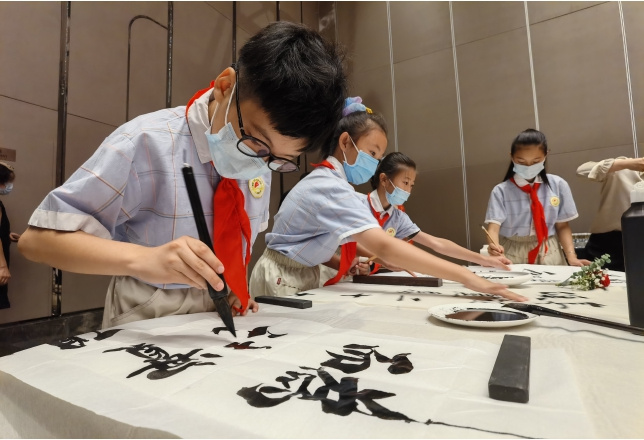 (特邀:黑龍江少年軍校二馬路小學(xué)的少先隊(duì)員代表在筆會(huì)現(xiàn)場(chǎng))