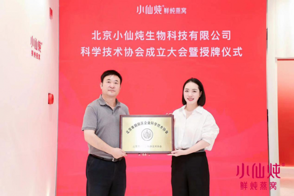 7月20日,北京小仙燉生物科技有限公司企業(yè)科學技術(shù)協(xié)會授牌儀式在小仙燉北京旗艦店舉行。北京市朝陽區(qū)科協(xié)主席馮守華一行出席儀式,與小仙燉鮮燉燕窩創(chuàng)始人、首席產(chǎn)品官林小仙,首席科學家王東亮等共同見證小仙燉企業(yè)科協(xié)成立。