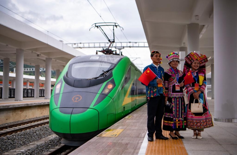 大瑞鐵路大保段通車當(dāng)天,在保山站乘車的旅客們紛紛掏出手機(jī)與復(fù)興號(hào)動(dòng)車組列車合影。“轉(zhuǎn)眼10多年過去了,我們終于等來了‘綠巨人’?!北I绞惺忻駝㈣丛谂笥讶Ρ磉_(dá)了喜悅之情。大瑞鐵路大保段通車前,大理至保山開汽車需約2.5小時(shí);通車后,大理至保山最快1小時(shí)9分可達(dá),極大便利沿線群眾出行和貨物運(yùn)輸?! ?/p>
