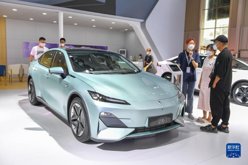 這是在長春汽博會現(xiàn)場展出的比亞迪新能源車型(7月22日攝)。