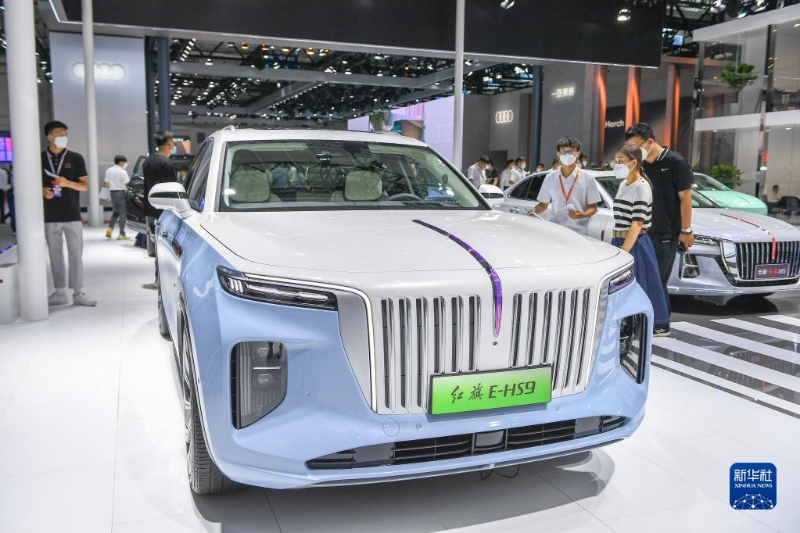 這是在長春汽博會現(xiàn)場展出的紅旗新能源車型(7月22日攝)。