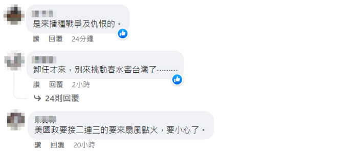 對(duì)于佩洛西的“訪臺(tái)”計(jì)劃,以及蓬佩奧自告奮勇宣稱“一起去臺(tái)灣”,臺(tái)灣民眾并不歡迎,直言“是來(lái)播種戰(zhàn)爭(zhēng)及仇恨的”、“卸任才來(lái),別來(lái)挑動(dòng)春水害臺(tái)灣了……”、“美國(guó)政要接二連三的要來(lái)煽風(fēng)點(diǎn)火,要小心了!”