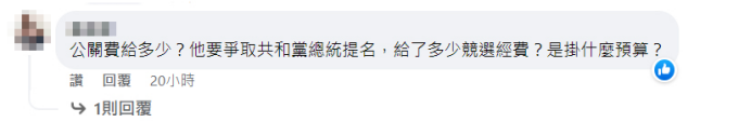 甚至有網(wǎng)友諷刺,“(蔡當(dāng)局)公關(guān)費(fèi)給多少?他要爭(zhēng)取共和黨總統(tǒng)提名,給了多少競(jìng)選經(jīng)費(fèi)?是掛什么預(yù)算?”