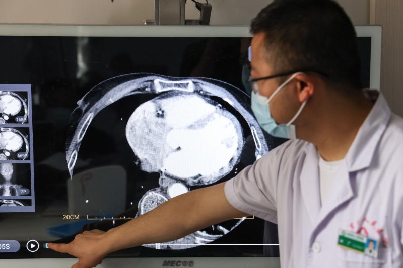 6月7日,貴州省龍里縣人民醫(yī)院呼吸科主任田廣通過遠(yuǎn)程診斷系統(tǒng)查看患者的醫(yī)學(xué)影像資料。新華社記者 歐東衢 攝