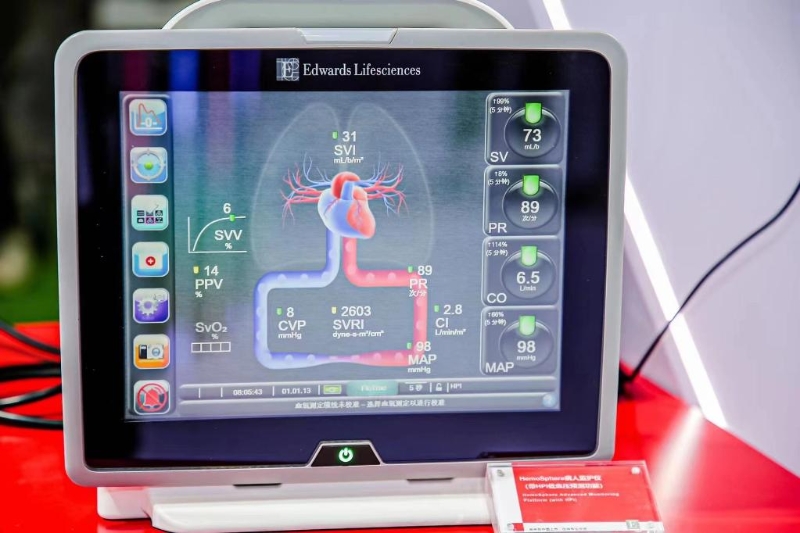 第四屆進(jìn)博會(huì)上的愛德華生命科學(xué)展臺(tái)里,全新一代HemoSphere病人監(jiān)護(hù)儀正在展示。(受訪對(duì)象提供)