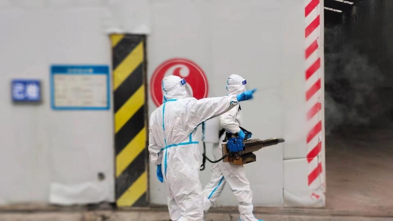 防疫人員正在蘭州市重點(diǎn)區(qū)域進(jìn)行消殺作業(yè)。(甘肅方舟救援隊(duì)供圖)