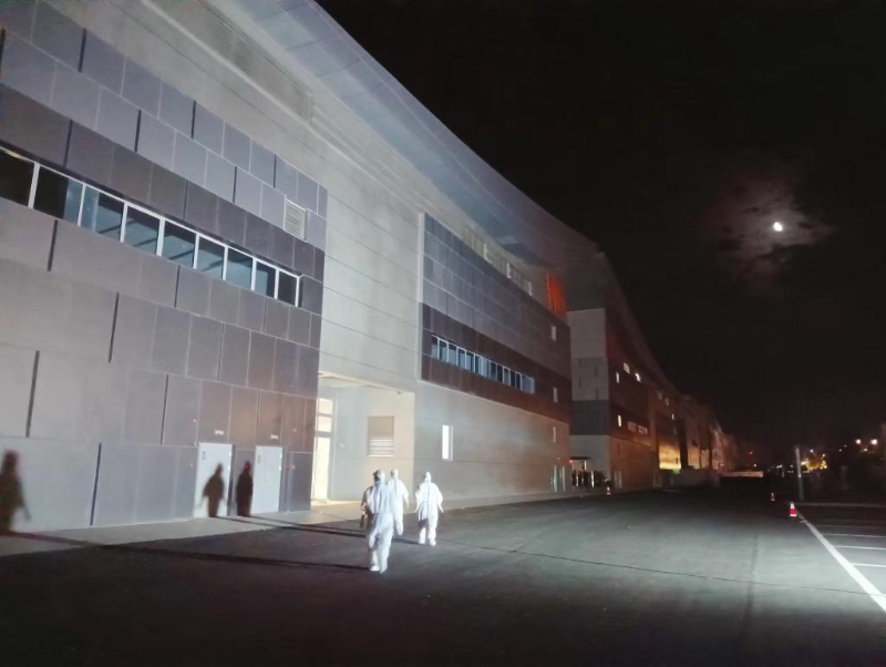凌晨,醫(yī)護(hù)隊(duì)員們處理完醫(yī)療垃圾后返回方艙醫(yī)院。(受訪者供圖)