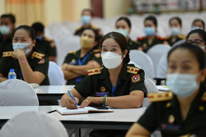 7月26日,在老撾萬象老撾人民軍103醫(yī)院,老軍衛(wèi)生專業(yè)人員參加中國(guó)軍隊(duì)“和平列車”醫(yī)療隊(duì)軍醫(yī)專家組學(xué)術(shù)講座。新華社發(fā)(曾理攝)