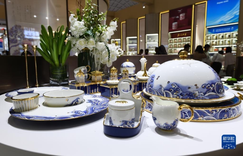 參展商深圳國瓷永豐源股份有限公司展出的瓷質(zhì)餐具(7月26日攝)。