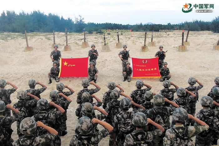 第74集團(tuán)軍某旅“三八線尖刀英雄連”在“八一”來臨之際組織官兵重溫入伍誓詞。 黃嘉軒攝