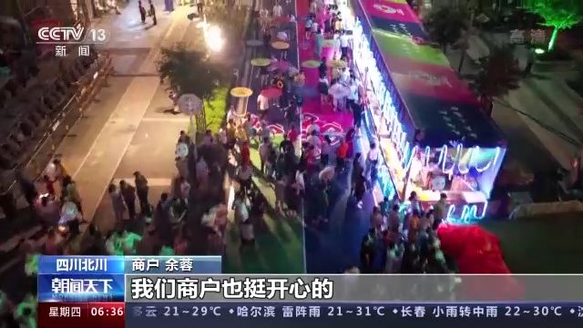 沉浸式表演融入璀璨絢麗的燈光秀,各種美食在夜市里刺激著游客們的味蕾,還有琳瑯滿目的商品,解鎖了北川夜間消費(fèi)新地圖。