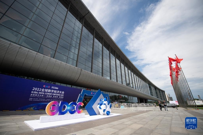 這是7月28日拍攝的2022全球數(shù)字經(jīng)濟大會舉辦地北京國家會議中心外景。