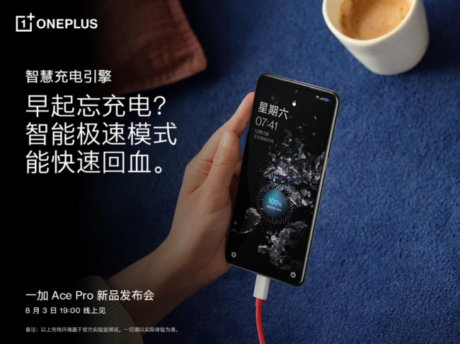 7月29日,一加手機宣布新機一加 Ace Pro 將搭載長壽版 150W 超級閃充和4800mAh 大電池,僅需19分鐘即可從1%充到100%,充電速度快,電池壽命長。一加 Ace Pro 還支持智慧充電引擎,可以根據(jù)不同場景智能切換充電模式,為用戶帶來更智能、無感的充電體驗。