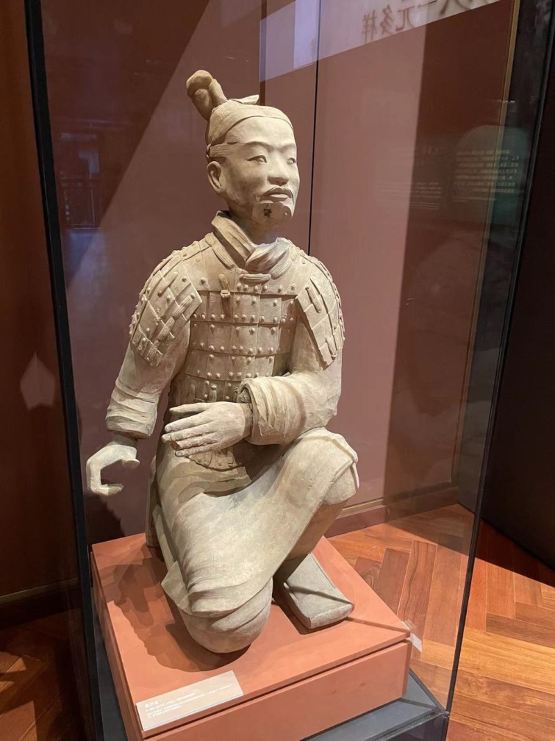 趙銀芳介紹:“秦始皇陵兵馬俑跪射俑的原件,也來(lái)到我們現(xiàn)場(chǎng)了,它是兵馬俑最精華的部分,而且沒(méi)有經(jīng)過(guò)修復(fù),是我們藝術(shù)版本的一個(gè)載體。”