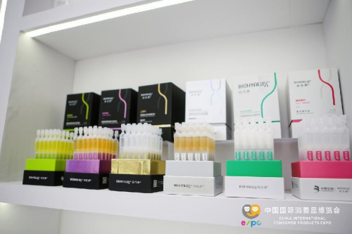 華熙生物在本屆消博會上,集中亮相了生物活性物原料(B-B)、醫(yī)療終端(B-B-C)、消費終端(B-C)全線業(yè)務共計29個品牌的200余款產(chǎn)品。其中包括,化妝品級、食品級、醫(yī)藥級等原料產(chǎn)品;醫(yī)美、骨科、眼科、PRP等藥械產(chǎn)品;功能性護膚品四大品牌「潤百顏」、「夸迪」、「米蓓爾」、「BM肌活」銷售過億的單品及明星產(chǎn)品;以及旗下洗護、男士、母嬰、寵物、功能性食品等創(chuàng)新業(yè)務產(chǎn)品。