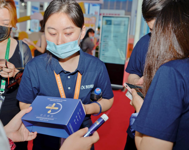 展會期間,「WPLUS+」還在現(xiàn)場發(fā)起了“5G膠原蛋白肽”新品派樣活動,邀請專業(yè)觀眾與消費(fèi)者駐足品鑒,廣受大家青睞?!叭肟诓粌H感受到滿滿的膠原蛋白,還帶有淡淡的蘋果香氣,口感很豐富?!?/p>