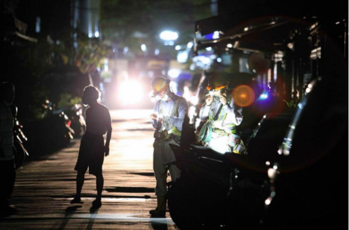 自7月18日以來,已經(jīng)連續(xù)8天發(fā)生停電狀況,其中6起發(fā)生在晚上。圖為臺電人員戴上頭燈,穿梭在各大樓間維修。(臺灣“中時新聞網(wǎng)”示意圖)