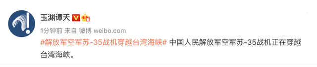 中國(guó)人民解放軍空軍蘇-35戰(zhàn)機(jī)正在穿越臺(tái)灣海峽。