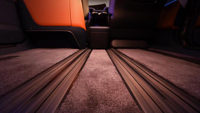 延鋒零壓座椅搭配超長行程電滑軌及旋轉(zhuǎn)機構(gòu),無需兩段式調(diào)節(jié)。 實現(xiàn)座椅長距離位移、旋轉(zhuǎn)等功能,靈活創(chuàng)造多模式布局,方便乘員自在互動。