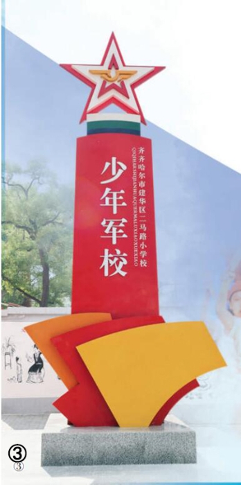 圖③:齊齊哈爾市二馬路小學(xué)校內(nèi)寫有“少年軍校”的建筑標(biāo)識(shí)。