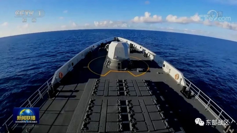 10余艘驅(qū)護(hù)艦連續(xù)位臺(tái)島周邊海域展開,實(shí)施聯(lián)合封控行動(dòng),對(duì)火力試射區(qū)域進(jìn)行掃海警戒,配合友鄰兵力進(jìn)行偵察引導(dǎo)。(來源|央視新聞)