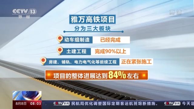 雅萬高鐵項目分為三大板塊,目前動車組制造已經(jīng)完成;土建工程完成90%以上;房建、鋪軌、電力電氣化等后續(xù)工程正在緊張施工。項目的整體進展達到84%左右。