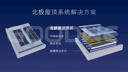 同時,固德威也公布了“北極瓦”系列光電建材直接應(yīng)用于屋頂?shù)姆桨浮ㄟ^“北極瓦”獨(dú)有的集成導(dǎo)排水功能,結(jié)合屋面完整構(gòu)造與屋檐收邊構(gòu)造,打造建筑光伏一體化屋面系統(tǒng)。該系統(tǒng)同時展示了檢修運(yùn)維通道與自動化清洗方案,將廣泛應(yīng)用于新建屋頂與改造屋頂。
