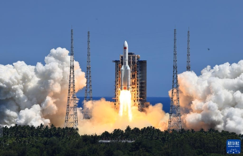 2022年7月24日,搭載問天實(shí)驗(yàn)艙的長征五號(hào)B遙三運(yùn)載火箭,在我國文昌航天發(fā)射場點(diǎn)火發(fā)射。新華社記者 李剛 攝
