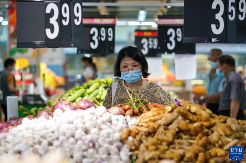市民在江蘇省無錫市經(jīng)開區(qū)華潤萬家超市購物(2022年7月7日攝)。江蘇省無錫市在做好疫情防控的同時(shí),積極制定相關(guān)方案,制作城市保供地圖,組織大型商超、市場正常運(yùn)營,全力保供穩(wěn)價(jià),端穩(wěn)市民“菜籃子”。新華社記者 李博 攝
