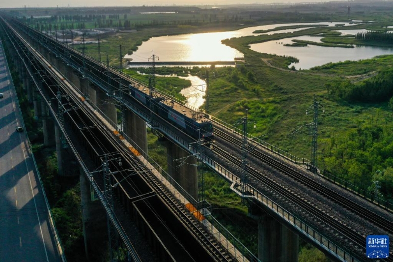 重載列車行駛在大秦鐵路上(2022年7月16日攝,無人機(jī)照片)。為做好迎峰度夏能源保供工作,中國鐵路太原局集團(tuán)有限公司在確保運(yùn)輸安全的前提下全力提升煤炭運(yùn)量。新華社記者 曹陽 攝