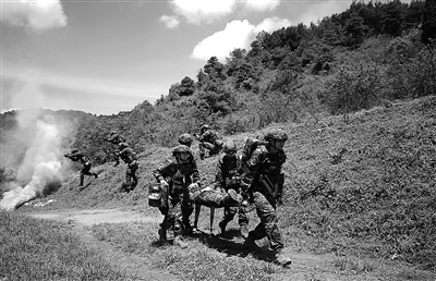 8月初,武警云南總隊(duì)醫(yī)院緊盯戰(zhàn)場(chǎng)救護(hù)需求,組織開展實(shí)戰(zhàn)條件下救護(hù)演練。圖為該院文職人員參加戰(zhàn)地救護(hù)相關(guān)課目訓(xùn)練。胡約翰攝