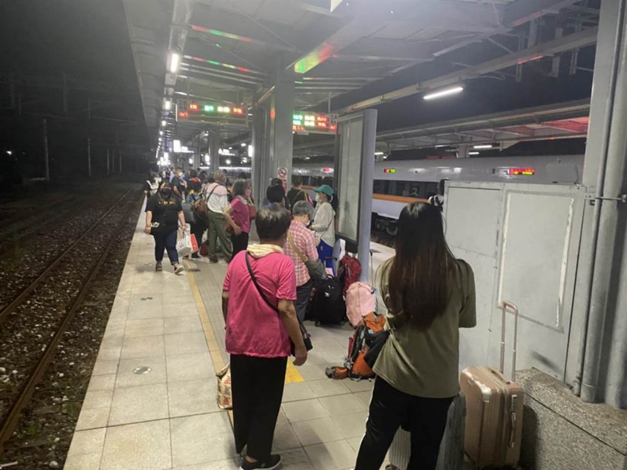 臺鐵太魯閣號432次列車9日傍晚6時許行經(jīng)花蓮瑞穗車站時,列車車軸疑似冒黑煙,車上旅客全都下車等待接駁,順間塞爆月臺。(乘客提供/羅亦晽花蓮傳真) 圖片來源:臺灣“中時新聞網(wǎng)”