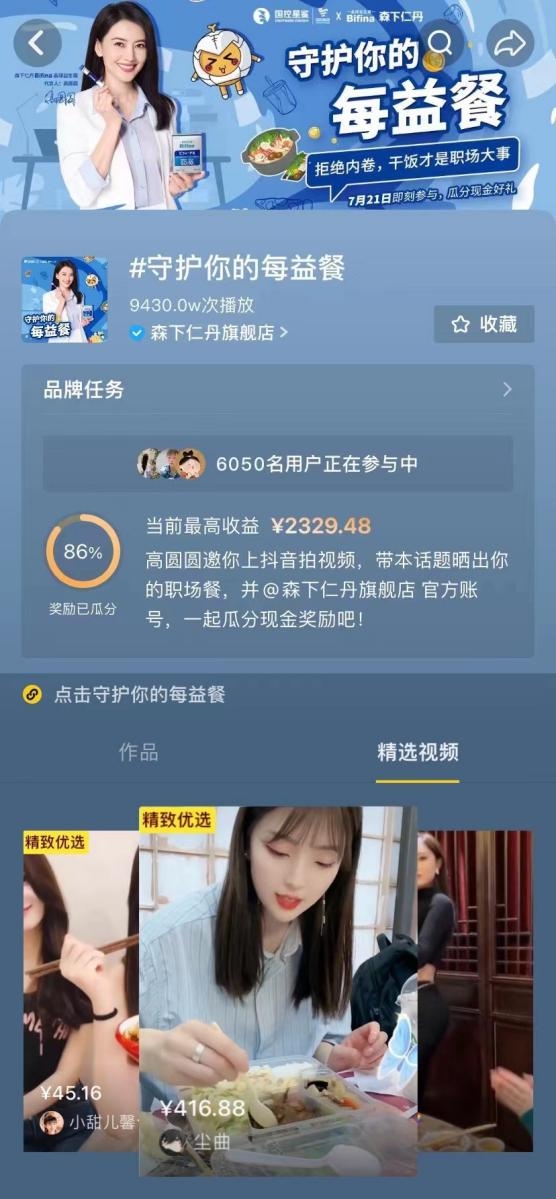 自7月21日全民任務(wù)挑戰(zhàn)賽#守護你的每益餐#活動上線后,曬出職場餐就可以瓜分現(xiàn)金獎勵,上不封頂。各路上班族紛紛加入曬餐,活動火爆出圈!全網(wǎng)上演“美食誘惑”承包味蕾~打卡曬餐的日子過的飛快,不知不覺10天時間就過去了,森下仁丹全民任務(wù)挑戰(zhàn)賽已經(jīng)結(jié)束!不知道這次活動有沒有讓各位打工人注意健康飲食,保護腸胃健康呢?