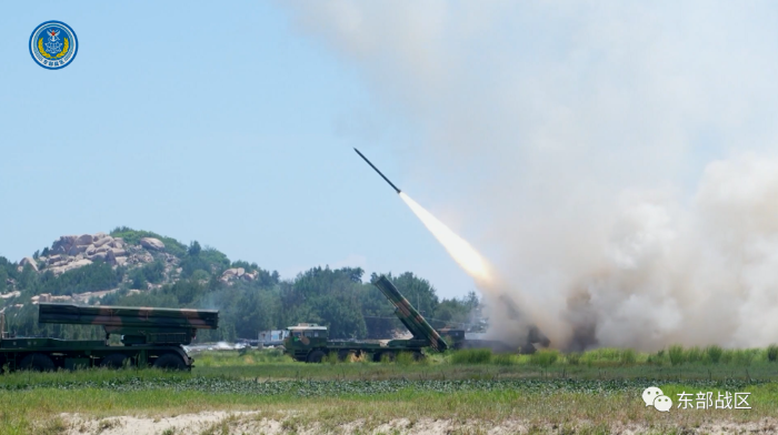 長纓呼嘯刺天際,戰(zhàn)神怒吼震蒼穹。戰(zhàn)區(qū)陸軍依令對臺灣海峽東部特定區(qū)域進(jìn)行精確打擊,遠(yuǎn)程火箭彈噴射烈焰直撲海面,打擊取得預(yù)期效果。