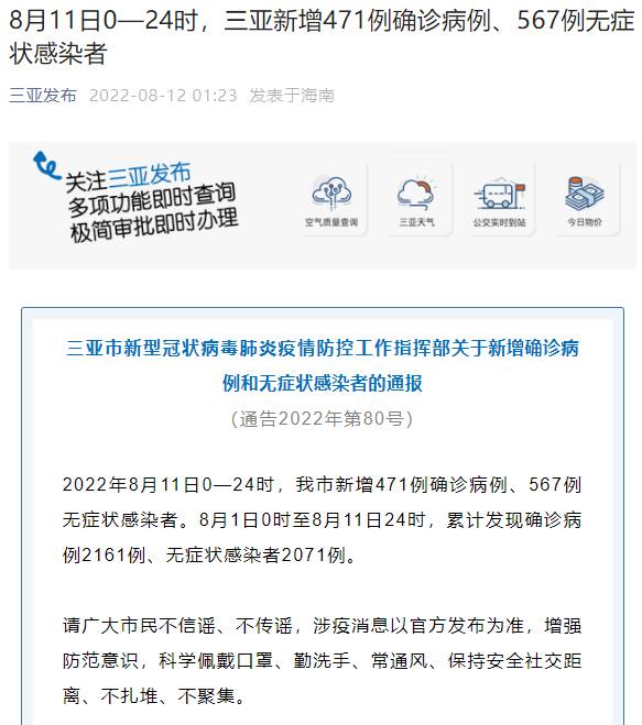 2022年8月11日0—24時(shí),我市新增471例確診病例、567例無(wú)癥狀感染者。8月1日0時(shí)至8月11日24時(shí),累計(jì)發(fā)現(xiàn)確診病例2161例、無(wú)癥狀感染者2071例。
