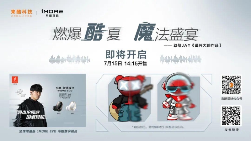 本次聯(lián)合發(fā)售萬(wàn)魔新降噪豆 1MORE EVO及全球限量版1MOER EVO 海報(bào)數(shù)字藏品。