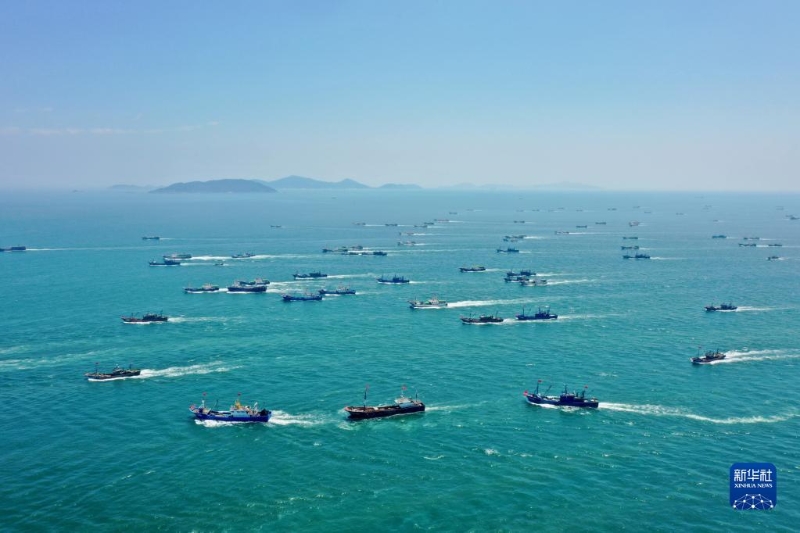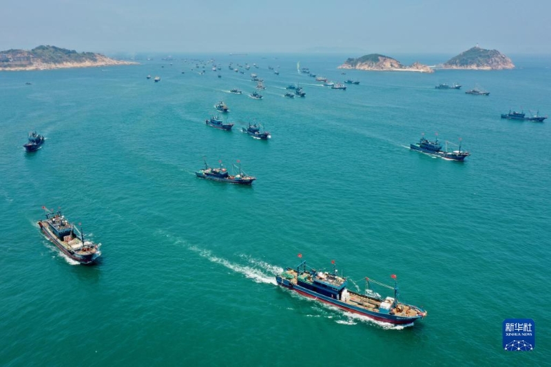 當(dāng)日12時,福建省部分海域(北緯26度30分以南的福建海域)結(jié)束為期三個半月的伏季休漁期,漁民開始出海作業(yè)。在福建省福州市連江縣海域,近千艘漁輪分別從黃岐、苔菉兩個中心漁港駛向東海。