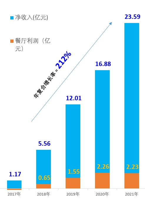 據(jù)悉,湊湊2016年以“火鍋+茶憩”的復(fù)合商業(yè)模式現(xiàn)身北京三里屯,也預(yù)示著呷哺集團(tuán)正式進(jìn)入高端餐飲賽道。2016年至2021年,湊湊營(yíng)收年復(fù)合增長(zhǎng)率高達(dá)212%,平均每11天新開(kāi)一家餐廳,創(chuàng)造了業(yè)內(nèi)公認(rèn)的“湊湊速度”。