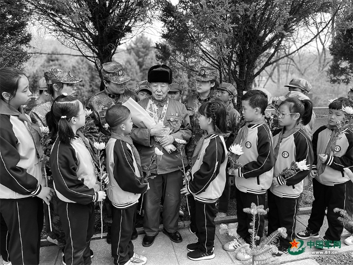今年建軍節(jié)前夕,丁寶鑒又一次來(lái)到烈士陵園。陵園里,許多人自發(fā)前來(lái)祭奠為國(guó)犧牲的先烈們。丁寶鑒作為義務(wù)宣講員,向他們講述起抗美援朝戰(zhàn)場(chǎng)上的那些動(dòng)人心魄的故事。