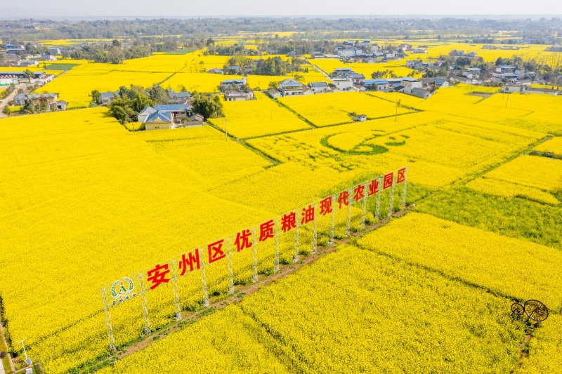 油菜花開(kāi)遍地金黃,春來(lái)花開(kāi)時(shí)是怡人春景,夏初豐收時(shí)是產(chǎn)業(yè)源頭。安州區(qū)作為全省產(chǎn)油大縣、“天府菜油”示范基地建設(shè)重點(diǎn)縣、四川省“10+3”糧油產(chǎn)業(yè)重點(diǎn)縣,共有26個(gè)“天府菜油”品種,全區(qū)油菜種植面積27.3萬(wàn)畝,總產(chǎn)預(yù)計(jì)5.4萬(wàn)噸。