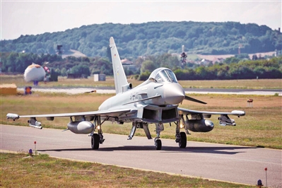 德國“臺風”戰(zhàn)機準備從諾伊堡空軍基地起飛。