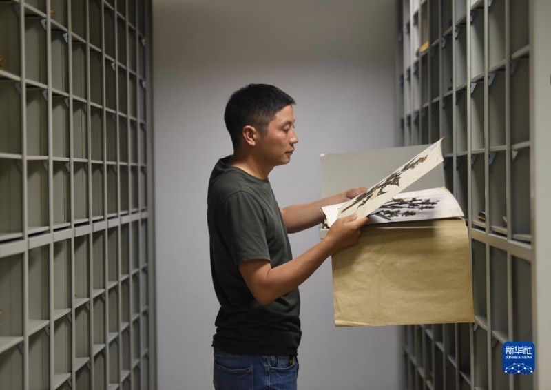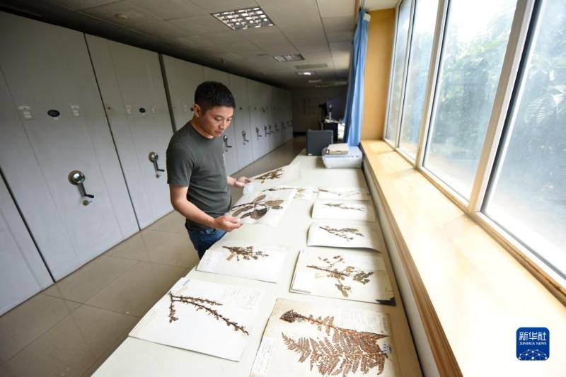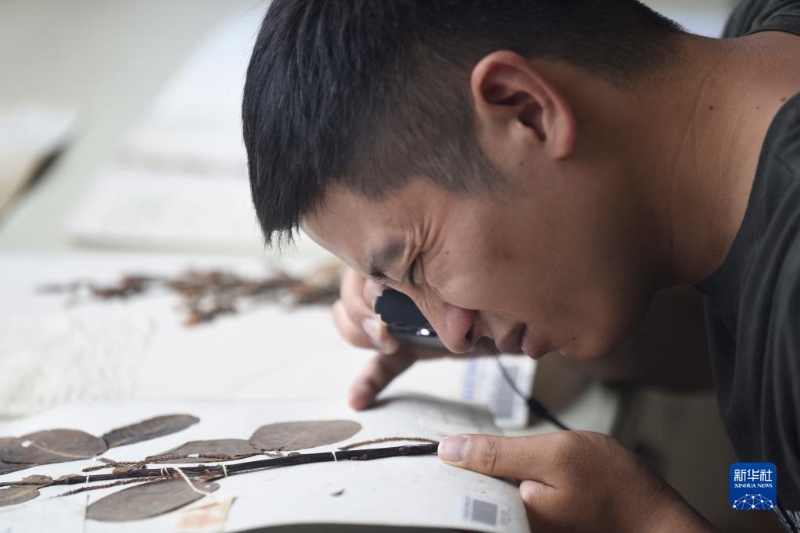 胡君在中科院成都生物研究所標(biāo)本館內(nèi)查閱標(biāo)本(8月17日攝)。新華社記者 劉坤 攝