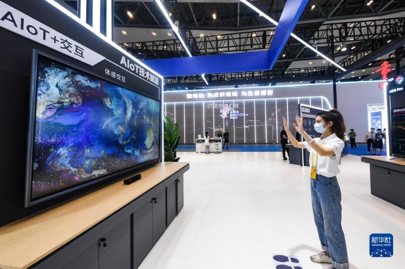 8月22日,記者在2022中國(guó)國(guó)際智能產(chǎn)業(yè)博覽會(huì)京東方展廳體驗(yàn)體感交互應(yīng)用。