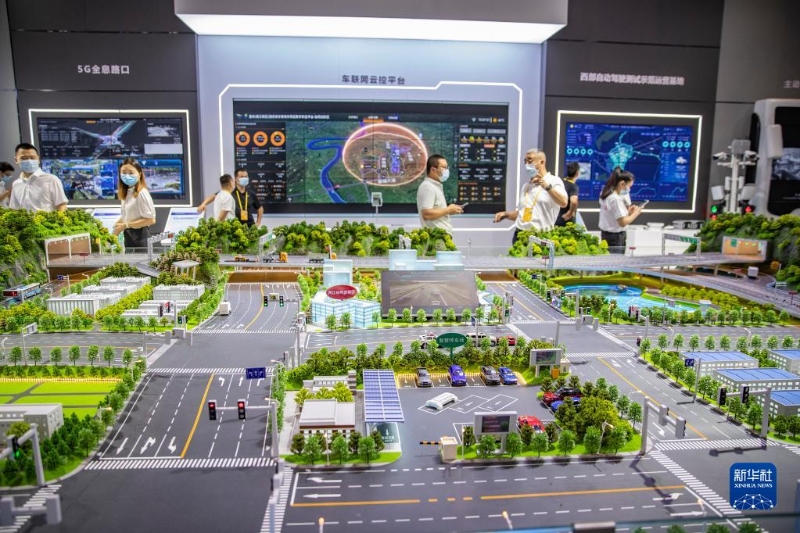 8月22日,嘉賓在2022智博會(huì)重慶展廳內(nèi)參觀車路協(xié)同沙盤(pán)。