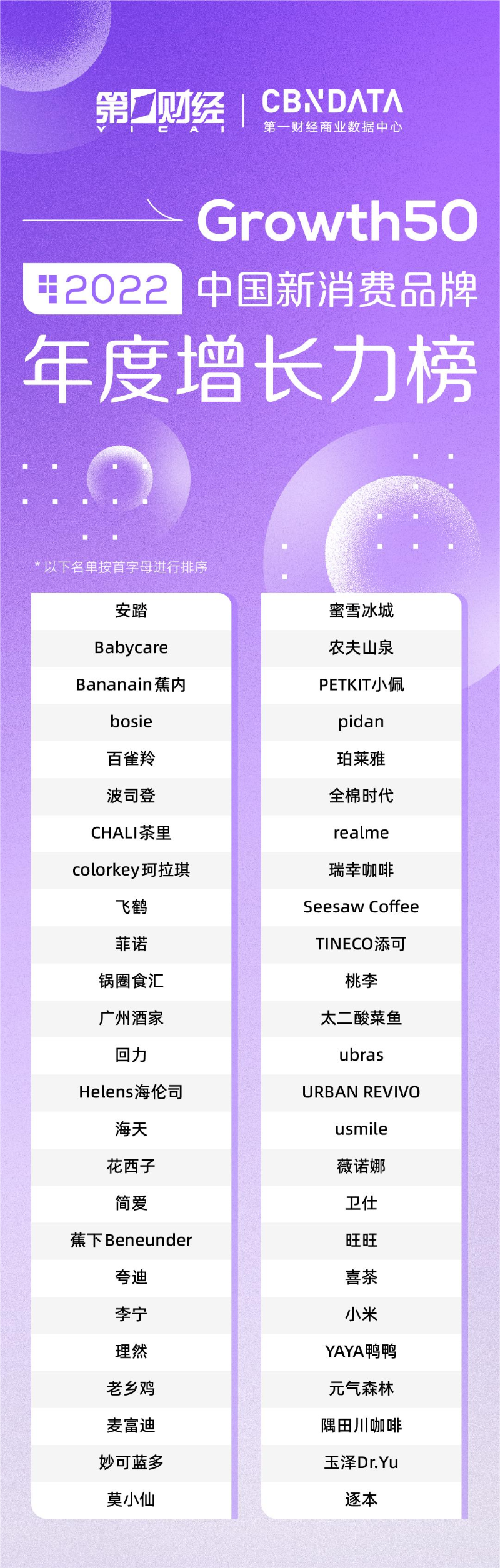 依托升級(jí)后的評(píng)價(jià)體系,經(jīng)過為期半年的調(diào)研、走訪和分析,CBNData于2022年8月24日正式揭曉《Growth50·2022中國(guó)新消費(fèi)品牌年度增長(zhǎng)力榜》(以下簡(jiǎn)稱Growth50榜單)。