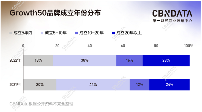 對(duì)比2021年,今年的Growth50榜單發(fā)生了許多變化,我們?cè)噲D從多個(gè)維度來對(duì)Growth50品牌的群像進(jìn)行分析: